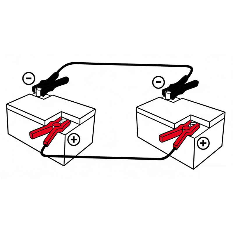 • 赤と黒の非導電性クランプにより、極性を迅速に識別できます。ゴムでコーティングされたケーブルは、使用時や保管時の絡みを防ぎます。