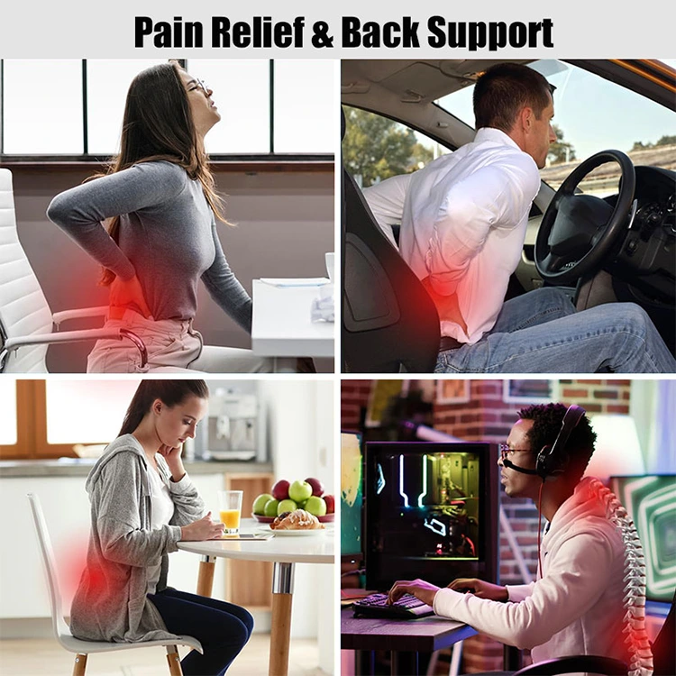 サポート力: この車用クッションは、オフィスの椅子に長時間座ったり、運転したりする場合に理想的なサポートを提供します。人間工学に基づいて設計されており、背中の上部、中部、下部の痛みや圧迫感を軽減します。正しい姿勢を促進し、背骨の自然なカーブを快適に保ちます。