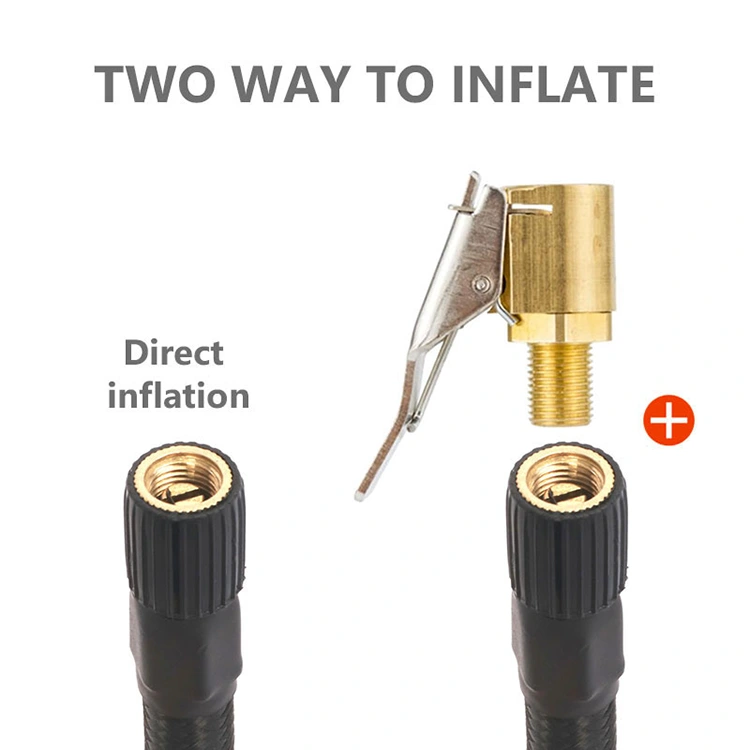 複数のノズルが付属:タイヤ、ボール、エアクッション、および最大150 PSIまでのその他のインフレータブル用のさまざまなアダプターが付属しています。