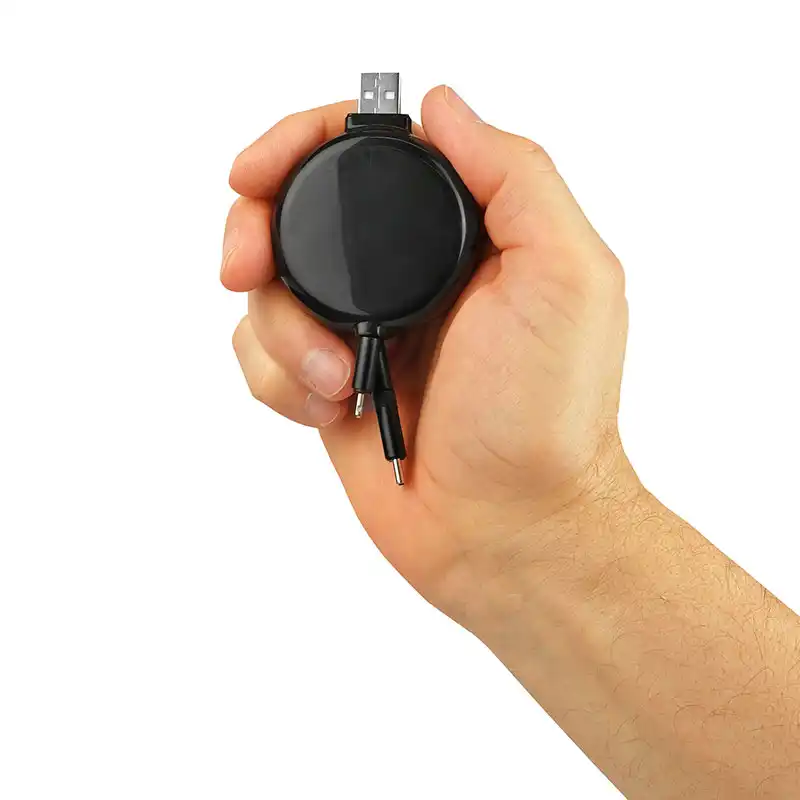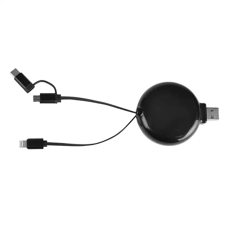 最大限の互換性を実現する単一の格納式リールに Lightning、Micro-USB、および USB-C コネクタを統合した多用途の 3-in-1 ソリューションです。