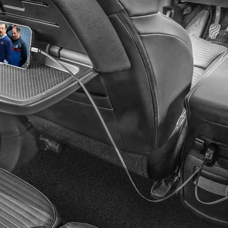 80cm の巻き取り式ケーブルにより、ほとんどの車両の後部座席からでもデバイスを便利に使用できます。